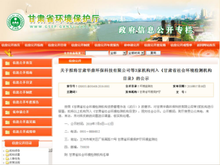 2016-7-6 公司被列入《甘肃省社会环境检测机构目录》