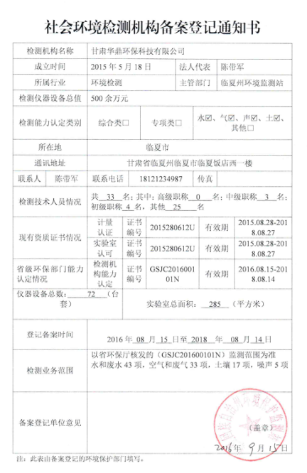 2016-9-15 热烈祝贺我公司在临夏州成功登记备案